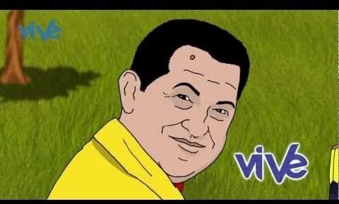 Unos dibujos animados muestran a Hugo Chávez al llegar al cielo, en el que le esperan su madre, Simón Bolivar o el Ché Guevara, entre otros.