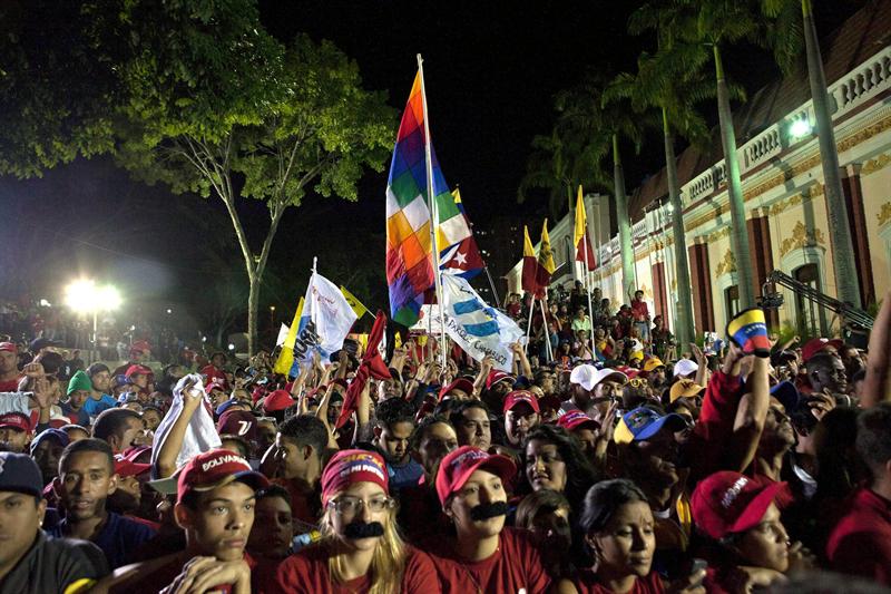 Seguidores del hombre al que Hugo Chávez ungió como sucesor político, Nicolás Maduro, que logró un ajustadísimo triunfo en las elecciones.