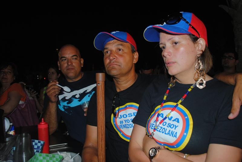 Seguidores del candidato de la oposición a la Presidencia de Venezuela, Henrique Capriles, se lamentan por la derrota de Capriles en Miami, Florida (EEUU)