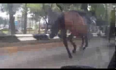 Un conductor capta le momento en que alrededor de 30 caballos, propiedad de la Secretaría de Seguridad Pública del Distrito Federal, galopan por una avenida, ante la mirada de sorpresa de los ciudadanos.