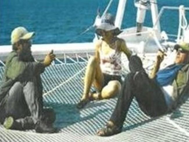 En la imagen se puede ver a tres dirigentes de las FARC tomando el sol en una embarcación de recreo en Cuba, donde se encuentran para participar en las negociaciones de paz con el Gobierno. Se trata, supuestamente, de Iván Márquez, número dos de las FARC y jefe de su delegación de paz, y Jesús Santrich, así como una de las mujeres que integran el grupo negociador terrorista.