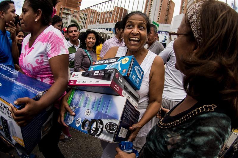 Miles de venezolanos se lanzaron este sábado a a la compra de electrodomésticos, y otras decenas, directamente al saqueo. Las colas en torno a la red de comercios "Daka" se alargaban durante horas, después de que Nicolás Maduro ordenara la ocupación de esta red de tiendas, a las que acusó de especular y vender sus productos con un sobreprecio de más de un 1.000%. "He ordenado inmediatamente la ocupación de esa red y sacar los productos a la venta del pueblo a precio justo, todos los productos. ¡Que no quede nada en los anaqueles! ¡Que no quede nada en los almacenes!", vociferó en televisión.