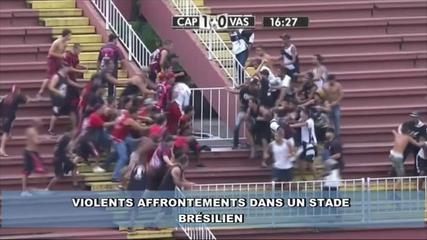 Un violento enfrentamiento entre hinchas del Atlético Paranaense y del Vasco da Gama dejó cuatro aficionados con graves heridas y provocó la suspensión temporal del partido de la última jornada del Brasileirao, que jugaban en la sureña ciudad de Joinville, perteneciente al estado de Santa Catarina.