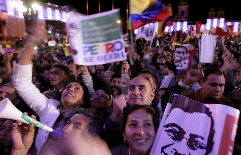 Gustavo Petro reaccionó a su destitución a través de su cuenta de Twitter: "Le pido al mundo solidaridad. Estamos ante un golpe de Estado sobre el gobierno progresista en la ciudad de Bogotá". En otro mensaje, el alcalde bogotano señaló que "la suerte de Bogotá Humana solo depende de la Movilización Popular, pido que sea pacífica". Para él, la razón está clara: "Me condenan porque desprivatice un servicio público. Porque rompí dogmas neoliberales, porque privilegie el interés general al particular".