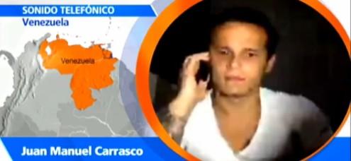 El detenido que fue víctima de la mencionada violación confirmó al mismo canal colombiano lo señalado por el abogado. Juan Carrasco narró con detalles lo que le ocurrió junto con unos amigos el día en que los miembros de la Guardia Nacional Bolivariana los detuvieron, agredieron –provocándoles hematomas, heridas y golpes en la cabeza– y amenazaron con matarlos. Agregó que el coche en el que estaban antes de ser intervenidos fue quemado por estos hombres armados. Durante toda la jornada de este domingo, circularon a través de las redes sociales fotos del estudiante en las que se notan las heridas.