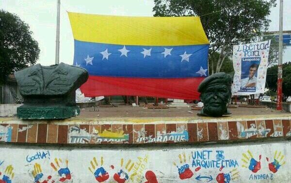 Pese a la gran presencia de militares, un grupo de manifestantes logró llegar hasta la estatua de Hugo Chávez en una plaza de San Antonio y decapitarla, para después derribarla. Como era de esperar, la imagen ya ha dado la vuelta al mundo a través de las redes sociales.