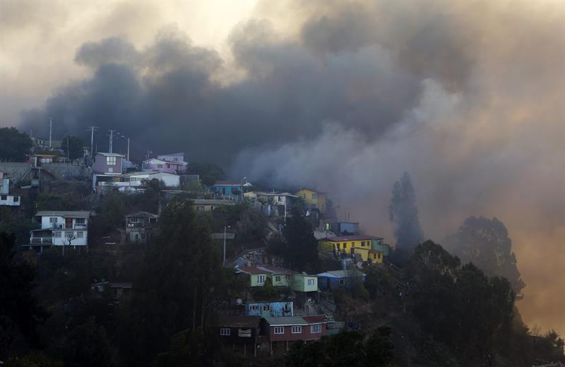 El incendio, que deja por el momento 12 fallecidos y más de 10.000 personas evacuadas, afectó varios cerros que rodean el puerto y cerca de 1.200 bomberos trabajaron durante horas para combatir las llamas.