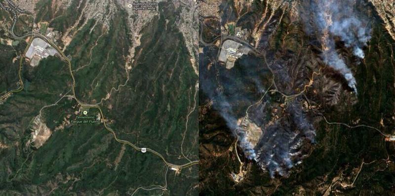 Imagen satelital cedida por el Servicio Aerofotogramétrico de La Fuerza Aerea de Chile SAF, del incendio en la ciudad de Valparaiso
