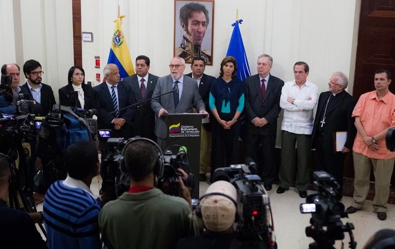 A la salida de la reunión, el secretario ejecutivo de la Mesa de la Unidad Democrática (MUD), Ramón Guillermo Aveledo, informó de que el gobierno se mostró abierto a crear un equipo de trabajo para iniciar un diálogo sobre presos y exiliados. Ambas partes confirmaron su "rechazo absoluto" a todo tipo de violencia y el respeto a la Constitución.