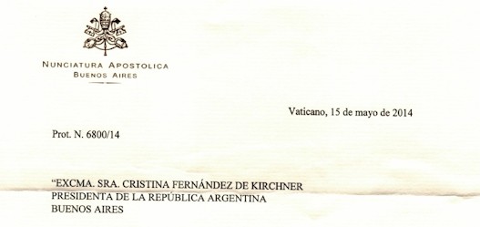 La presidencia argentina ya reaccionó a la noticia pero según EFE lo único que aclaró es que "no tenemos información de que sea falsa". Horas después, cambiaron el contenido y publicaron declaraciones del secretario de Culto, Guillermo Oliveri, quien informó que el día de ayer (por este miércoles) recibieron la carta por las vías habituales: "Recibimos una nota verbal de la Nunciatura, donde nos adjuntaban un sobre cerrado de parte del Nuncio". Agregó que "el que tiene que aclararlo es la nunciatura. Después veremos con nuestra embajada en la Santa Sede si hay algún otro problema en Santa Sede. Pero por lo pronto, el origen de la carta es la Nunciatura". Por su parte, el secretario de Presidencia, Oscar Parrilli, dijo que "no hacemos conjeturas ni sabemos qué es lo que ocurrió".