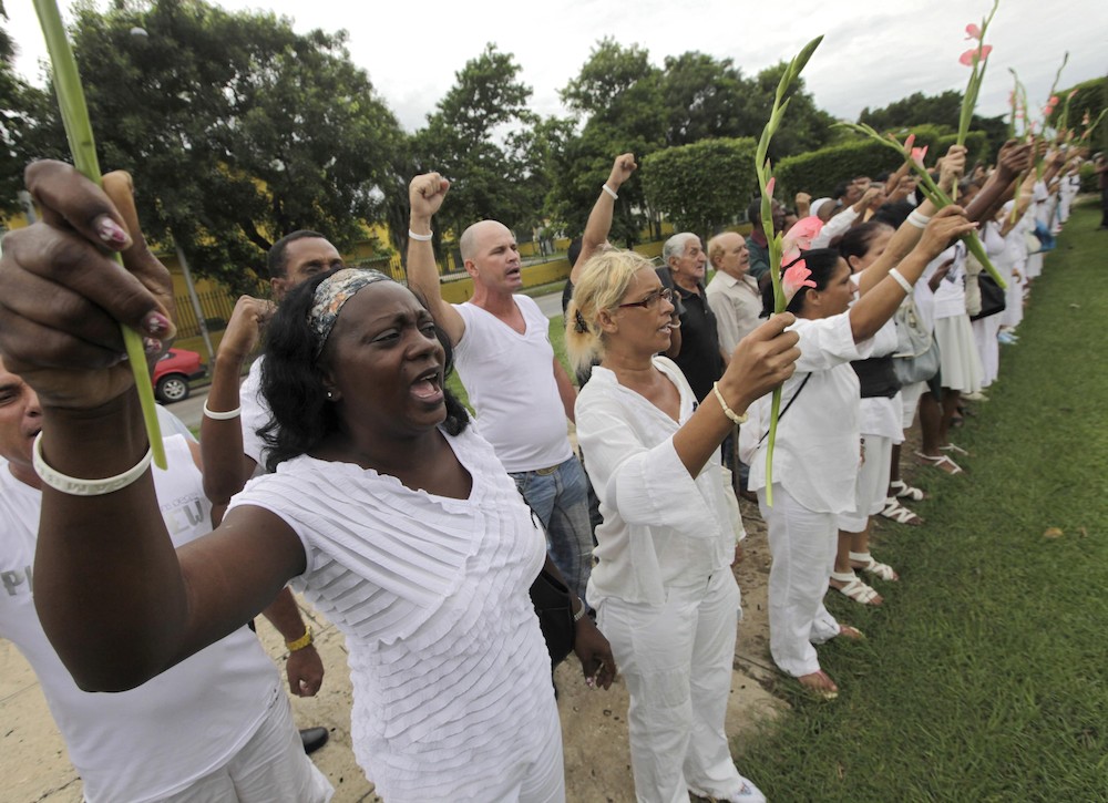 El movimiento Damas de Blanco surgió para reclamar la libertad de sus esposos, hijos o hermanos opositores del llamado "Grupo de los 75" que fueron encarcelados y condenados a largas penas de prisión entre marzo y abril de 2003.