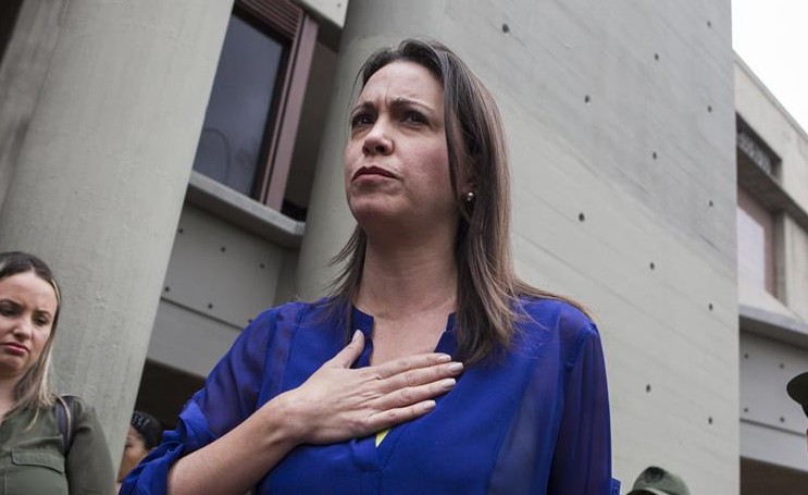 Su abogado, Tomás Arias, informó a EFE de que "el Ministerio Público no solo presentó un escrito solicitando la prohibición de salida del país, sino que dice que la diputada Machado habría incurrido en el delito de instigación pública". Según Arias, la causa en contra de Machado se encuentra en el Tribunal 16 de Control desde el pasado 18 de junio y ese mismo día dictó una medida de prohibición de salida del país, pero la dirigente se enteró este lunes cuando visitó el Palacio de Justicia para revisar las actas que conforman su expediente a las cuales no había accedido.