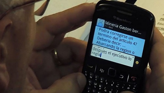 El diputado provincial en cuestión es Gustavo Muñiz del partido kirchnerista Frente para la Victoria de la presidenta Cristina Fernández de Kirchner. En la pantalla del móvil del político se lee un mensaje de un contacto identificado como "Minera Gaston ber" que dice: "Podría corregirse un término del artículo 4? Debería decir: ... Abarcando la región o (...)". El legislador responde "(...) después el Ejecutivo lo regla". La prensa local señaló que el interlocutor del diputado sería posiblemente Gustavo Berardi, gerente de la minera Yamana Gold.
