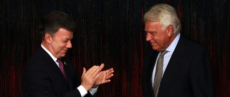 El expresidente del Gobierno español Felipe González recibió este martes en Bogotá la ciudadanía colombiana de manos del presidente Juan Manuel Santos, que lo definió como "un ser extraordinario", amigo del país suramericano y de sus esfuerzos de paz.