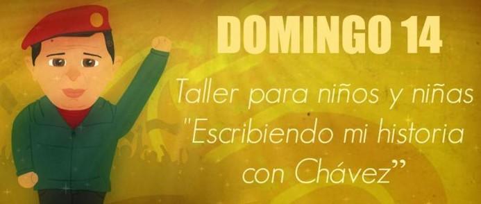 Entre los talleres organizados está el de "Escribiendo mi historia con Chávez" destinado a que los "niños y niñas escriban e ilustren sus propios cuentos con el Comandante Eterno". Según el Ministerio de Cultura, citado por Infobae, este taller –disponible durante dos fines de semana– es dictado por el Colectivo ComuniCalle.