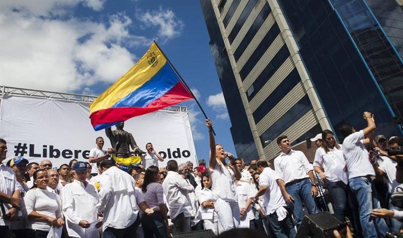 La oposición venezolana se concentró este miércoles en Caracas para exigir la liberación de "todos los presos políticos", empezando por el jefe de Voluntad Popular (VP), Leopoldo López, que fue encarcelado hace un año.