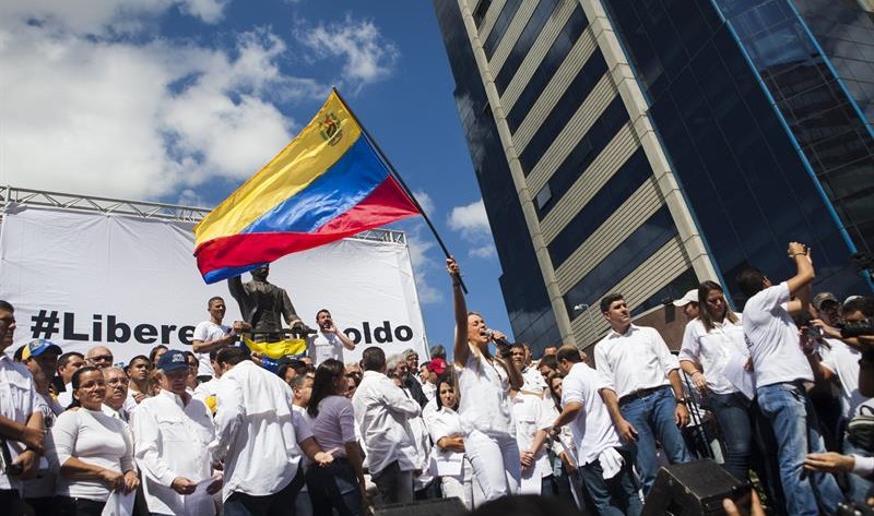 La esposa del líder opositor estuvo arropada en este acto por numerosos dirigentes de la Mesa de Unidad Democrática. "Hoy se cumple un año de prisión. Su familia, amigos y conciudadanos hemos luchado cada día por su libertad y lo vamos a lograr", dijo la líder de Vente Venezuela, María Corina Machado. También afirmó que este año "cambió para siempre la historia de Venezuela" porque "los ciudadanos han enfrentado la dictadura militarista y mafiosa" y "el mundo ha entendido la crueldad de Maduro y la inviabilidad del régimen".