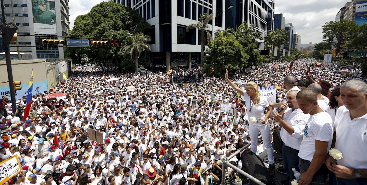 Los manifestantes, la mayoría de ellos vestidos de blanco, recorrieron una de las principales avenidas del este de la capital venezolana, con consignas y pancartas a favor de la libertad de Leopoldo López, Daniel Ceballos y otros opositores presos como el alcalde metropolitano de Caracas, Antonio Ledezma, y contra el Gobierno del presidente Nicolás Maduro.
