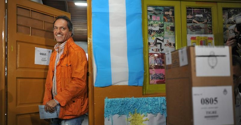 Según los primeros sondeos datos oficiales, Daniel Scioli, candidato del kirchnerista Frente para la Victoria (FpV) obtendría una ventaja de unos 6 puntos porcentuales sobre el conservador Mauricio Macri, líder de Propuesta Republicana (Pro). Otro apunte importante es que Macri se impone sobre los otros dos candidatos que compiten en primarias dentro de la coalición opositora Cambiemos, con lo que será candidato presidencial para las generales del 25 de octubre.