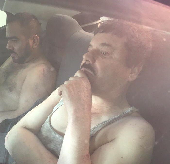 Durante la operación de captura, el Chapo fue inmortalizado con una cámara en una de las habitaciones, con una sucia camiseta de tirantes, las manos esposadas y cara de circunstancias. En una imagen que fue filtrada a los medios de comunicación mexicanos, el narcotraficante fue retratado con el rostro serio, sentado en el borde de la cama.