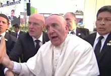 El entusiasmo de un joven casi provoca la caída del Papa cuando se despedía de los asistentes en un encuentro en Morelia, en el estado de Michoacán.