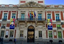 Fachada de la Real Casa de Correos, con los carteles | Comunidad de Madrid