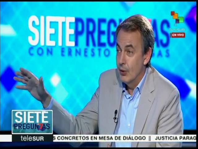 El ex presidente del Gobierno José Luis Rodríguez Zapatero, fue entrevistado este lunes en Telesur, la televisión oficialista, en la que habló de su papel de mediador y de su nuevo viaje a Venezuela, con su agenda de encuentros con los opositores y también con miembros del gobierno. En la entrevista, Zapatero hizo equilibrismos para mantener una posición equidistante entre las dos partes y justificó su labor en el país y su llamamiento al "diálogo", que hizo de forma constante.