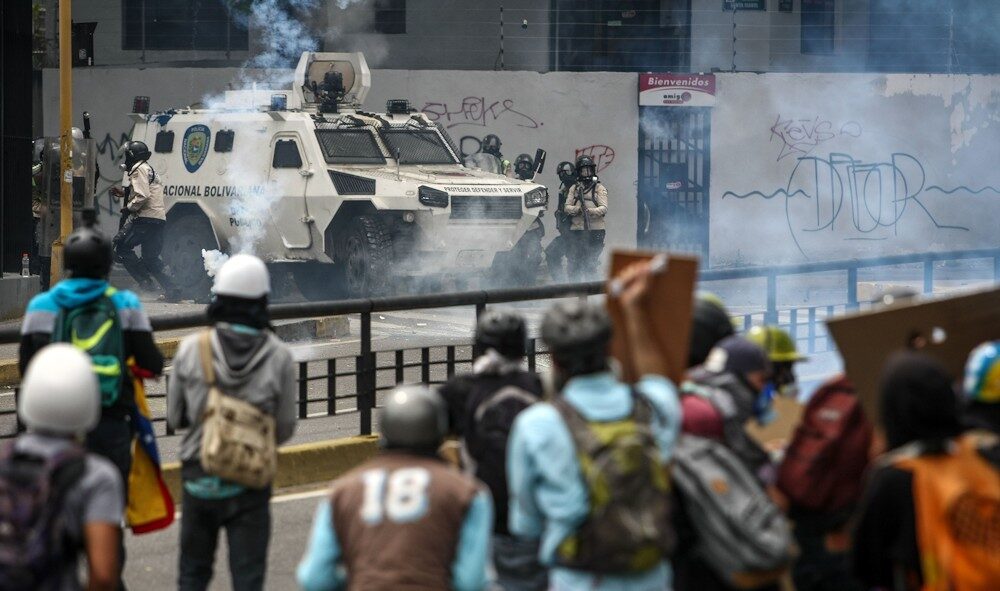 La GNB instaló nuevamente una valla metálica en dicha autopista y pidió a los opositores, mediante mensajes difundidos con megáfono, que retrocedieran para reabrir el paso de vehículos y evitar una confrontación, que finalmente se produjo. Decenas de manifestantes alzaron sus manos en señal de tregua pero tampoco lograron continuar la marcha. Varios dirigentes opositores aseguraron a través de las redes sociales que estaban siendo "reprimidos" por los cuerpos de seguridad del Estado.