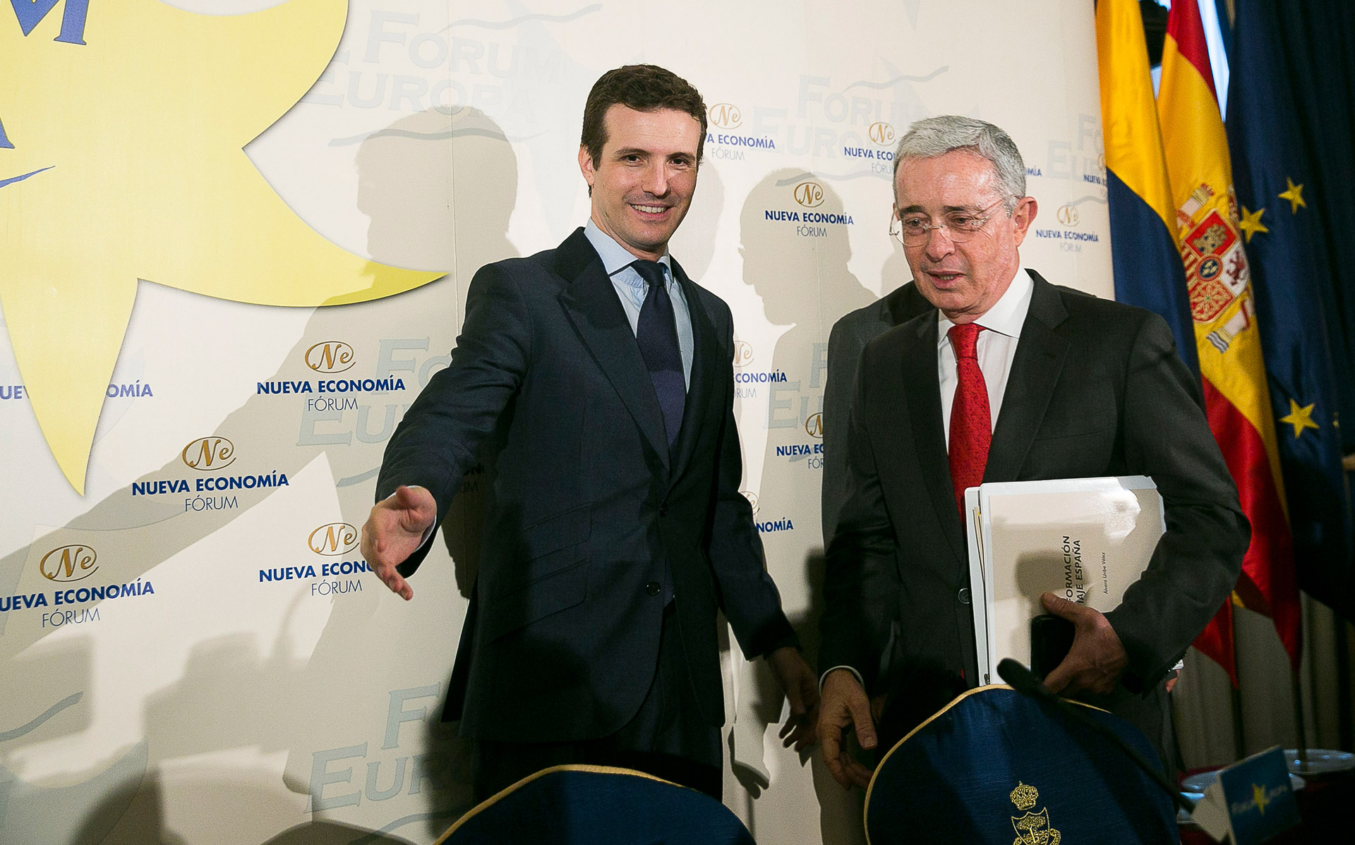 El expresidente colombiano Álvaro Uribe lamentó este miércoles, durante un desayuno informativo de Fórum Europa, que el Gobierno de Mariano Rajoy apoyara "el acuerdo con las FARC", aunque agradeció que la ministra de Defensa del nuevo Ejecutivo, María Dolores de Cospedal, hiciera, en su última visita a Colombia, "comentarios bien importantes sobre el diálogo con el terrorismo".