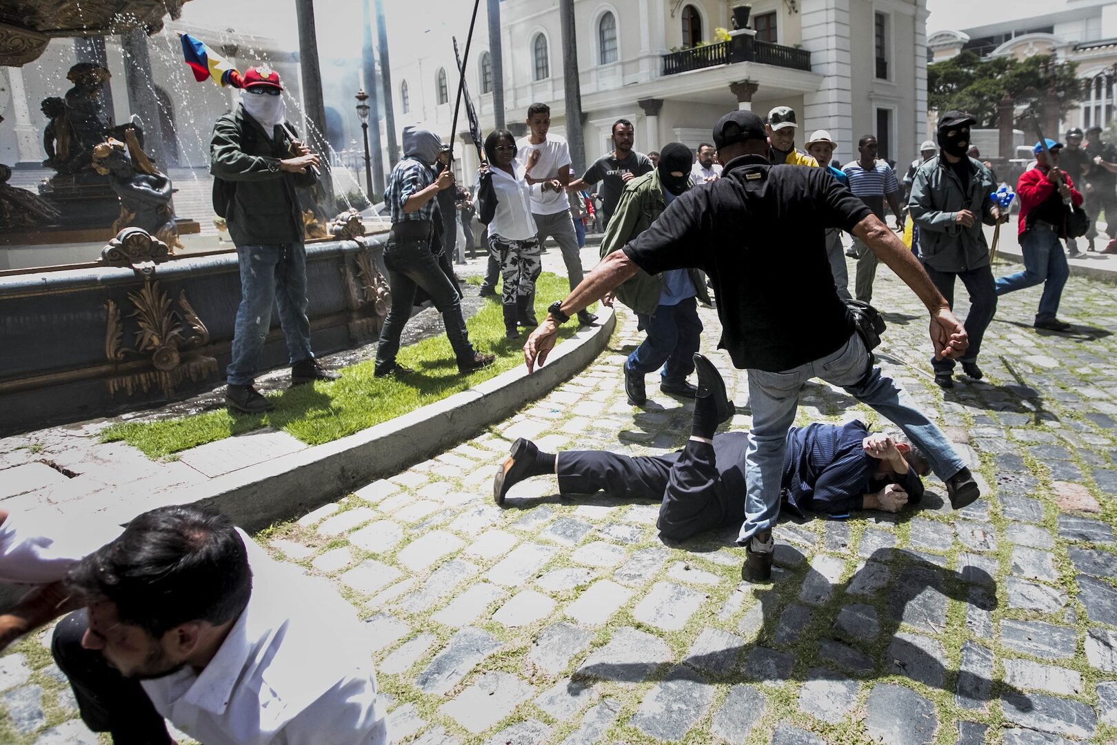 Legisladores de la Mesa de Unidad Democrática (MUD) –coalición opositora– han indicado que en torno al mediodía (hora local) civiles armados que llevaban desde primera hora merodeando por la zona han entrado en el Parlamento y han atacado a varios diputados.