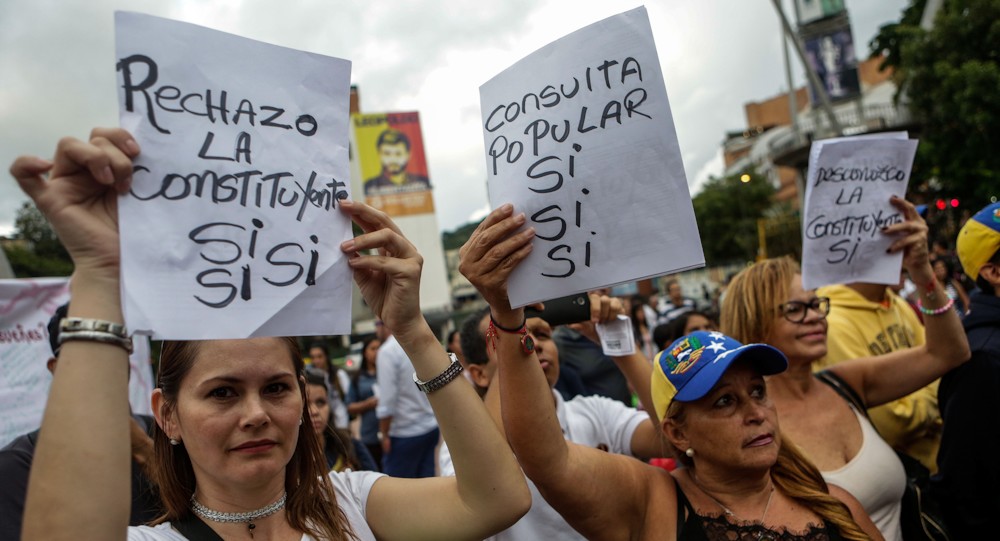 La oposición venezolana convocó a los venezolanos a expresar este domingo su rechazo al proceso constituyente impulsado por Nicolás Maduro a través de una "consulta popular" que muchos han catalogado de referéndum. Por su parte, en una clara provocación, el chavismo también pidió a sus seguidores a acudir a un simulacro para preparar las elecciones para la Asamblea Constituyente del próximo 30 de julio.