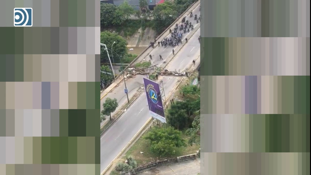 La Guardia Nacional Bolivariana arremete, supuestamente con pelotas de goma, contra una manifestación contraria a La Constituyente, en las cercanías de Los Ruices, en Caracas.