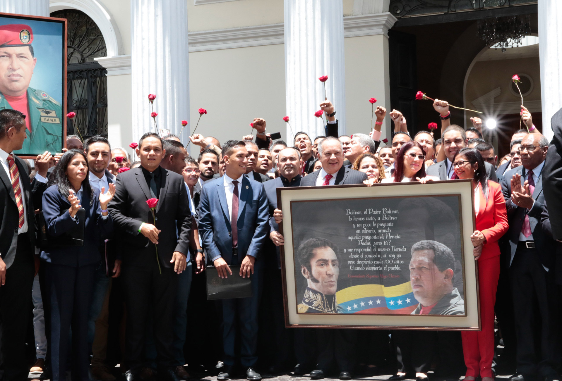 Los diputados chavistas que han tomado posesión de sus cargos en el mismo edificio en el que se reúne la Asamblea Nacional, y ya han hecho pública su primera decisión: la exministra de Exteriores Delcy Rodríguez presidirá la cámara, que está integrada únicamente por representantes afines al régimen.