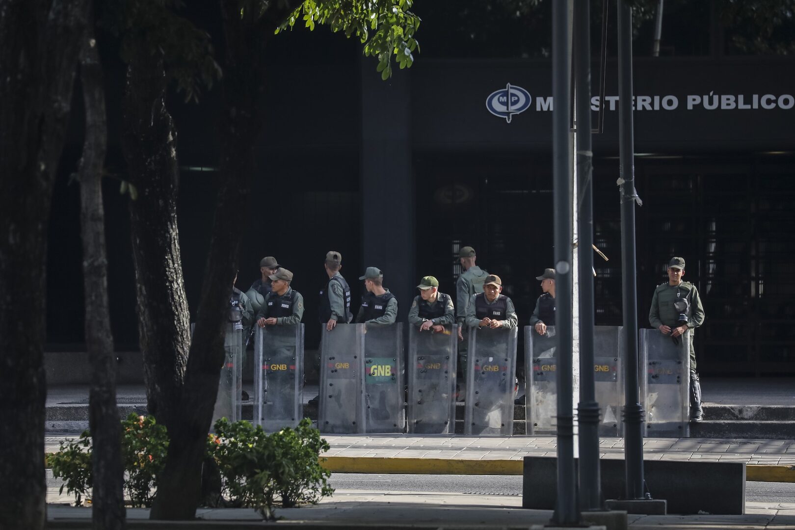 El contingente de medio centenar de agentes militares bloqueó los accesos a la sede del MP en el centro de Caracas y se mantiene apostado desde primeras horas de la mañana a las puertas, constató Efe.