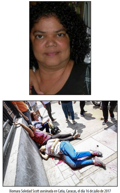 El informe recoge, entre otros testimonios, el caso de Xiomara Soledad, una enfermera de 61 años que fue asesinada por un impacto de bala el 16 de julio en Caracas, mientras se encontraba en las inmediaciones de una iglesia participando en la "Consulta Popular" organizada por la oposición venezolana contra la Asamblea Constituyente. Un grupo de motorizados armados y encapuchados, identificados como afectos al Gobierno, dispararon contra las personas que guardaban fila para votar, matando a Soledad e hiriendo a otras cuatro personas.