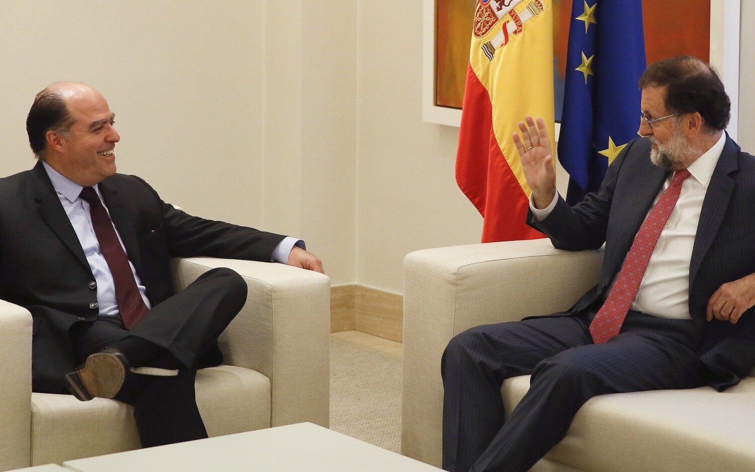 Los mensajes fueron difundidos tras concluir el encuentro entre Borges y Guevara con Rajoy, quien expresó a los políticos de la oposición su deseo de que se alcance una solución negociada y democrática en la crisis de Venezuela. El presidente del Gobierno garantizó a Borges que seguirá promoviendo en la Unión Europea medidas "restrictivas, individuales y selectivas" contra los responsables de la "represión" en Venezuela.