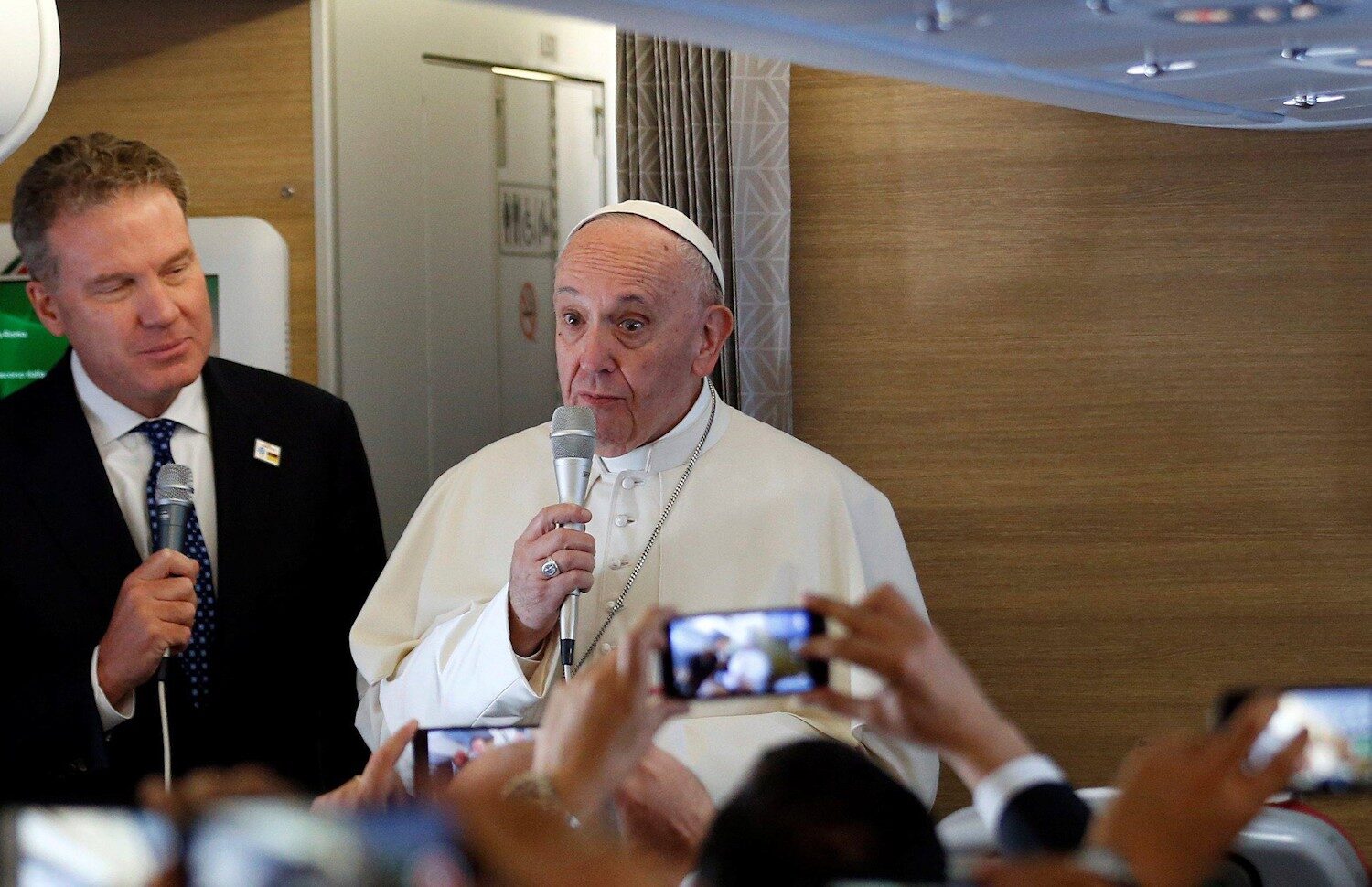 Durante el vuelo también se confirmó que, tras la misa que celebrará en el Parque Simón Bolívar de Bogotá, Francisco se reunirá con cinco obispos venezolanos presentes en la ceremonia, según el portavoz del vaticano, Greg Burke.