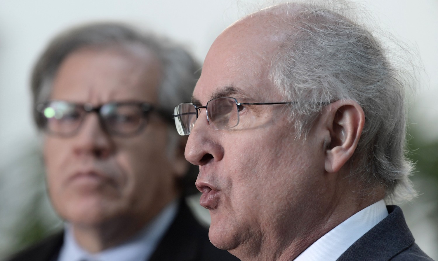 Almagro y Ledezma ofrecieron una breve comparecencia ante la prensa en la que dejaron claro que rechazan la postura de la mayoría opositora del Parlamento, que este martes aprobó una resolución a favor del diálogo con solo tres votos antichavistas en contra.