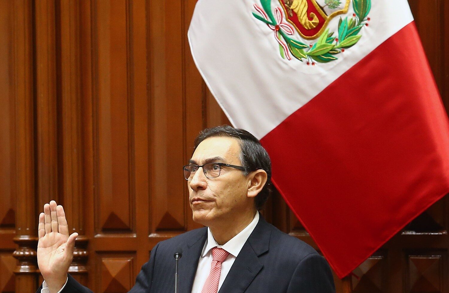 El flamante presidente Martín Vizcarra, que hasta este sábado fue primer vicepresidente y embajador peruano en Canadá, recibió la banda presidencial y juró al cargo, que deberá ejercer hasta el 28 de julio del 2021, ante el presidente del Congreso, el fujimorista Luis Galarreta.