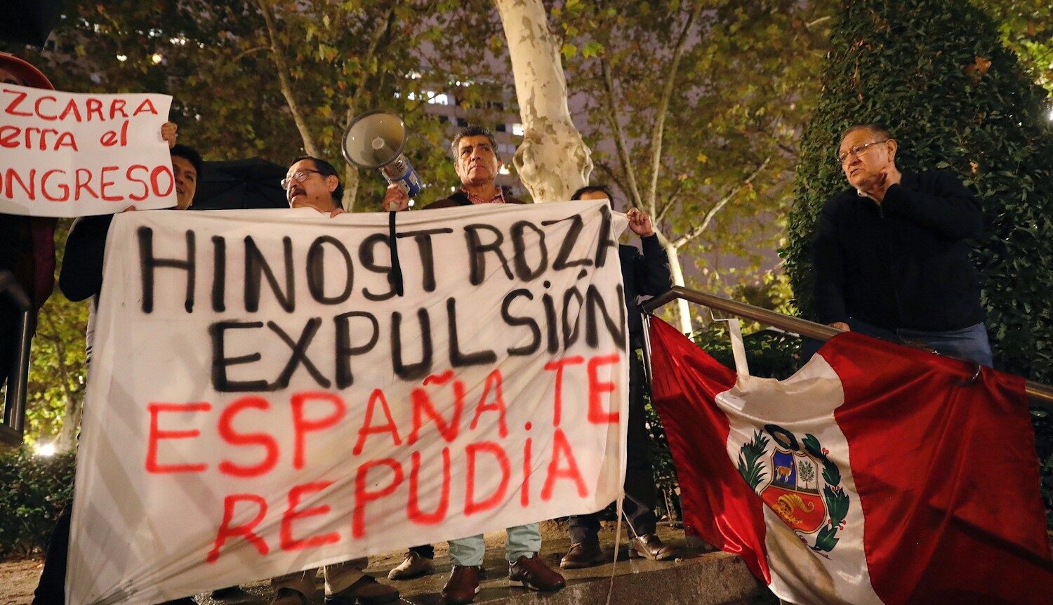 Peruanos protestan frente a la Audiencia Nacional donde declaró César Hinostroza. | EFE