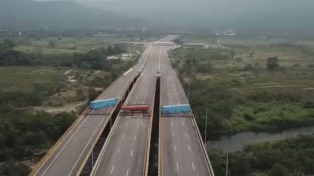 El tirano Nicolás Maduro da un paso más contra la población venezolana evitando la llegada de ayuda humanitaria desde Colombia. Las imágenes muestran el bloqueo de los accesos a Venezuela con guardia bolivariana y contenedores.