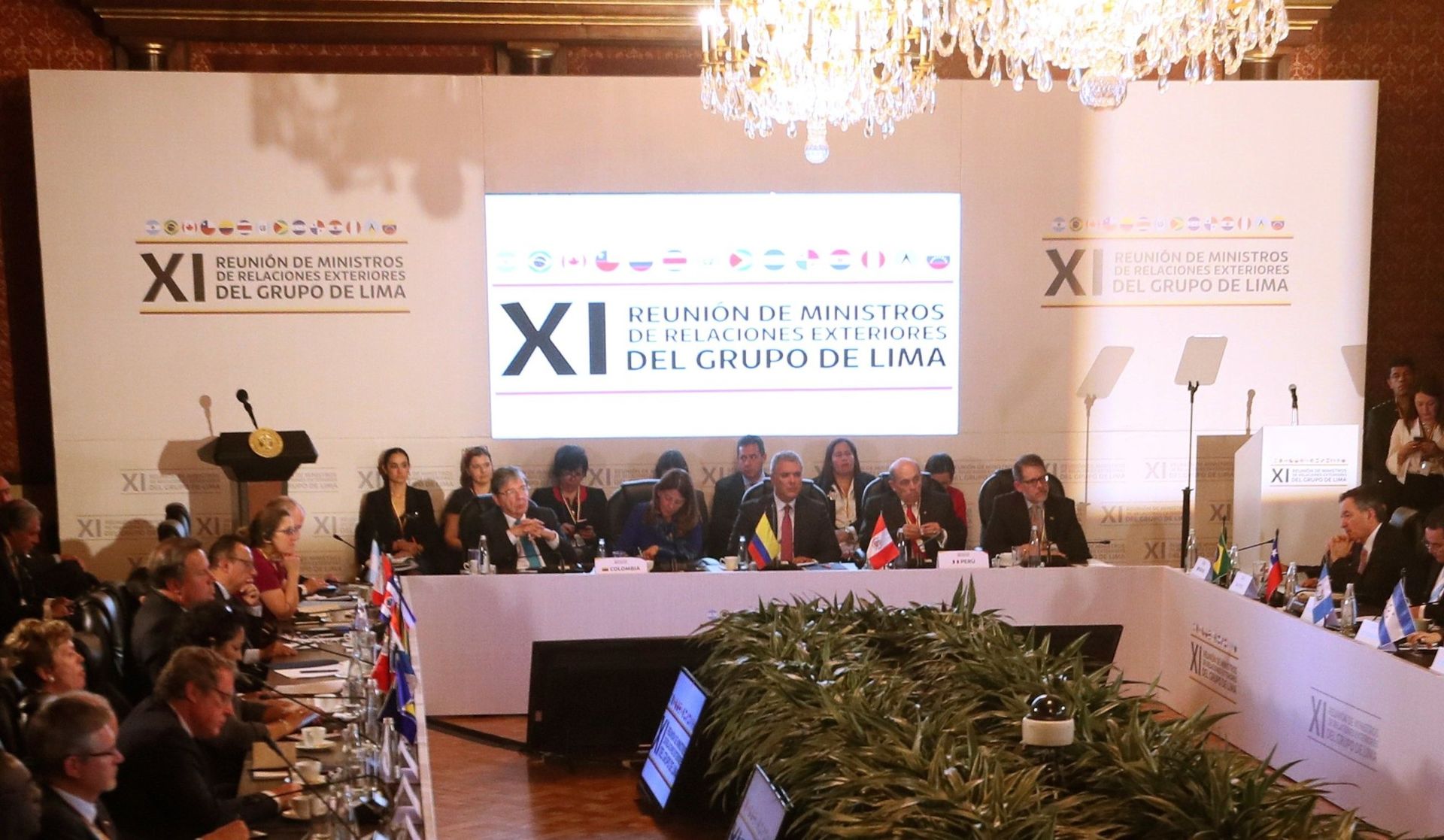 Al encuentro acudieron los presidentes de Colombia, Iván Duque; Panamá, Juan Carlos Varela, y Guatemala, Jimmy Morales, además de los vicepresidentes de EEUU, Mike Pence, y Brasil, Hamilton Mourao. Este último fue el más contundente al asegurar que para Brasil la opción militar nunca estuvo sobre la mesa en el caso de Venezuela, sino que ha abogado por "soluciones pacíficas". Preguntado acerca de las diferentes posturas de los países que componen el Grupo de Lima, así como de EEUU, Mourao respondió con rotundidad que "nadie está apostando por una solución militar".