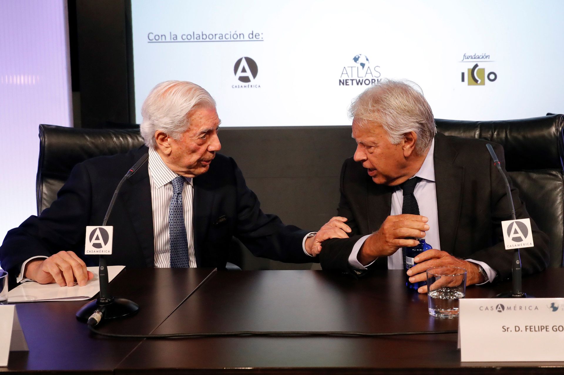 Ante estas consideraciones, Vargas Llosa ha tomado la palabra y ha comentado que "ojalá todos los dirigentes socialistas de Europa tuviesen la lucidez de Felipe González y hubiesen actuado de una manera tan cristalina, decidiéndose sin tapujos a apoyar a los opositores". Preguntado entonces acerca de a quién considera, a día de hoy, el líder real de la oposición, ha respondido rápidamente: "Guaidó. Creo además que él es el presidente legítimo de Venezuela, no únicamente por haber sido reconocido por más de cincuenta países de todo el mundo, sino porque además le han ratificado los propios votantes de la oposición, que a día de hoy constituyen una mayoría clara en el país".