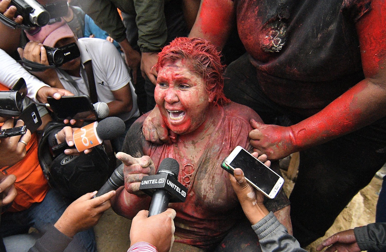 Arce corría descalza por la calle entre empujones, hasta caer al suelo entre una multitud que gritaba "asesina", según mostraron las imágenes de medios bolivianos como los diarios cochabambinos Los Tiempos y Opinión. A la alcaldesa la rociaron una pintura de color rojizo por el cuerpo y el cortaron en pelo en plena calle, entre un griterío de grupos de gente, muchos de ellos jóvenes, con palos y piedras.