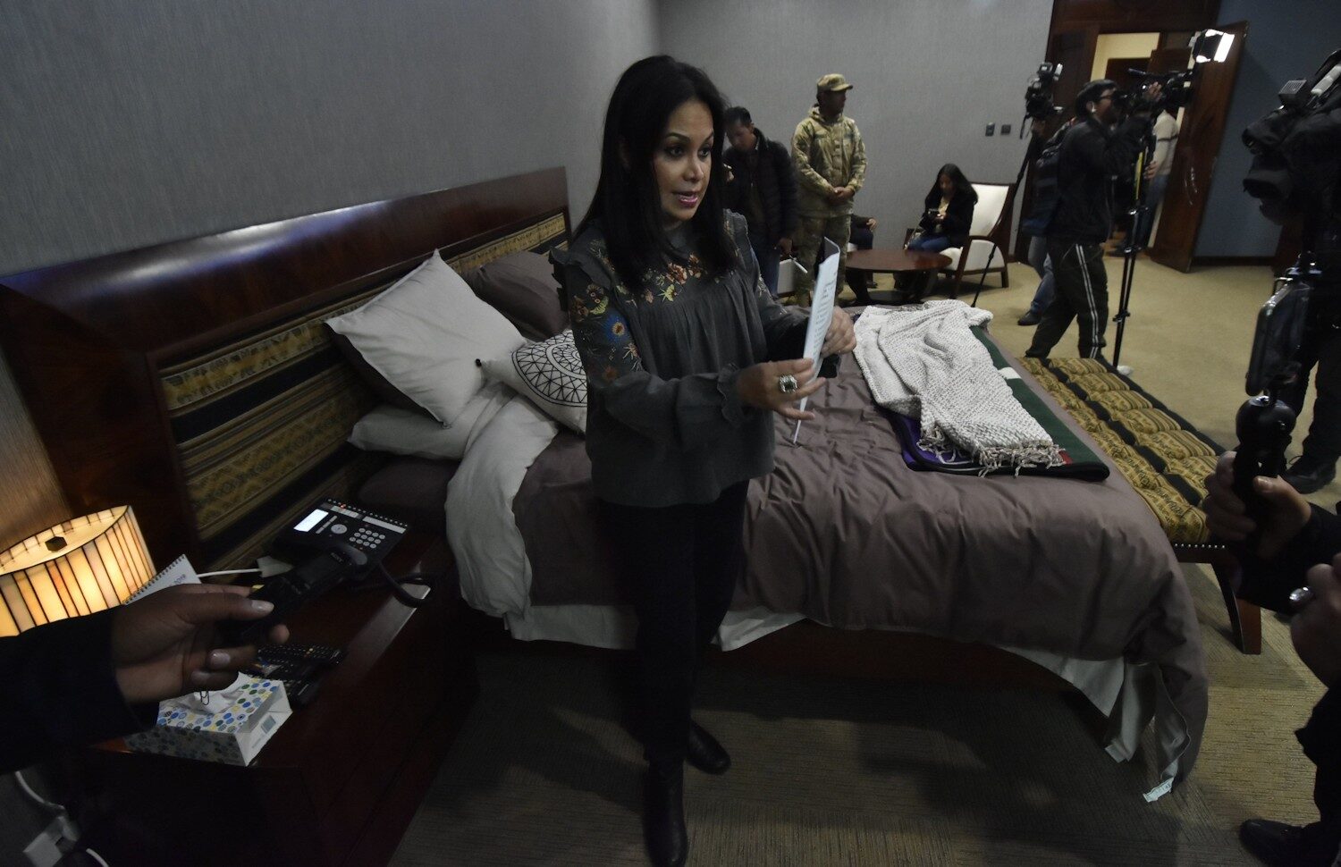 La suite de Evo Morales estaba en uno de los pisos de la gran edificación de 29 plantas que estrenó en agosto de 2018 y que reemplazó al viejo Palacio Quemado de La Paz, un edificio histórico justo a sus espaldas. "Para un lugar de descanso creo que no necesitas esto", recalcó Lizárraga, antes de iniciar la visita.