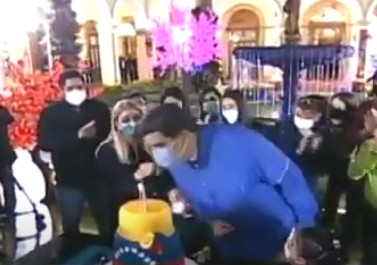 Nicolás Maduro nos ha regalado un nuevo episodio curioso. El pasado lunes, el chavista cumplió 58 años y lo celebró con un acto en el Palacio presidencial de Miraflores, en Caracas. En el momento final de la ceremonia, intentó apagar varias veces las velas, sin éxito, mientras su esposa Cilia Flores parecía advertirle algo. Tal vez, quería informarle que tenía puesta la mascarilla. Al final, optó por apagar las velas con sus dedos.