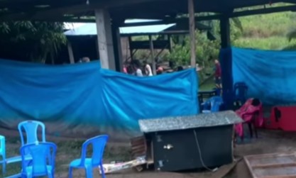 Las imágenes del lugar muestran casquillos de bala y un panfleto con el logo del Partido Comunista del Perú, el nombre oficial de Sendero Luminoso, en medio de un campamento en medio de la selva.