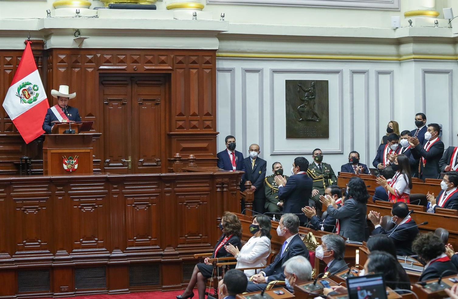 El comunista Pedro Castillo se ha convertido en presidente de Perú rodeado de motivos indígenas y con un primer discurso largo lleno de menciones contra España, a pesar de la presencia del rey Felipe VI en la ceremonia, obligado a acudir a la cita por el Gobierno de Pedro Sánchez.