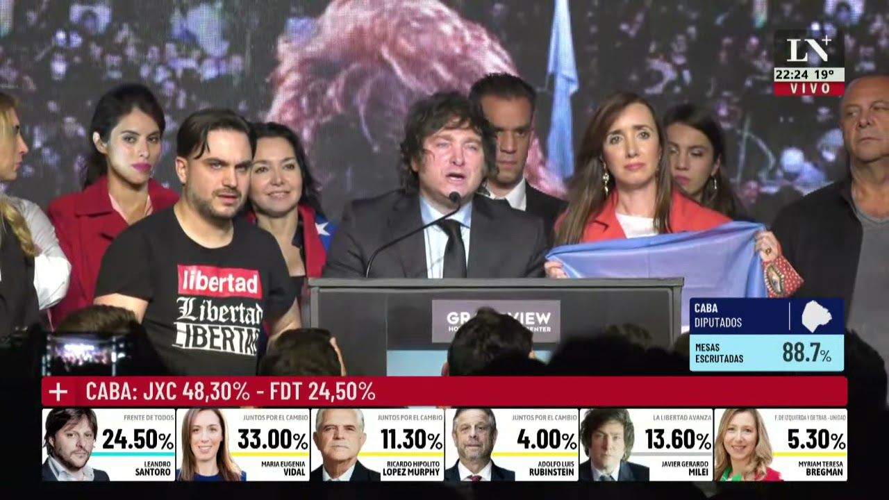 Milei ha sido uno de los protagonistas de la campaña, logrando una gran repercusión mediática en los últimos meses y celebrando los actos más multitudinarios, con un duro discurso de un corte muy liberal, que en Argentina resulta prácticamente antisistema por su durísimo nivel de confrontación contra el peronismo y la "casta" política tradicional.