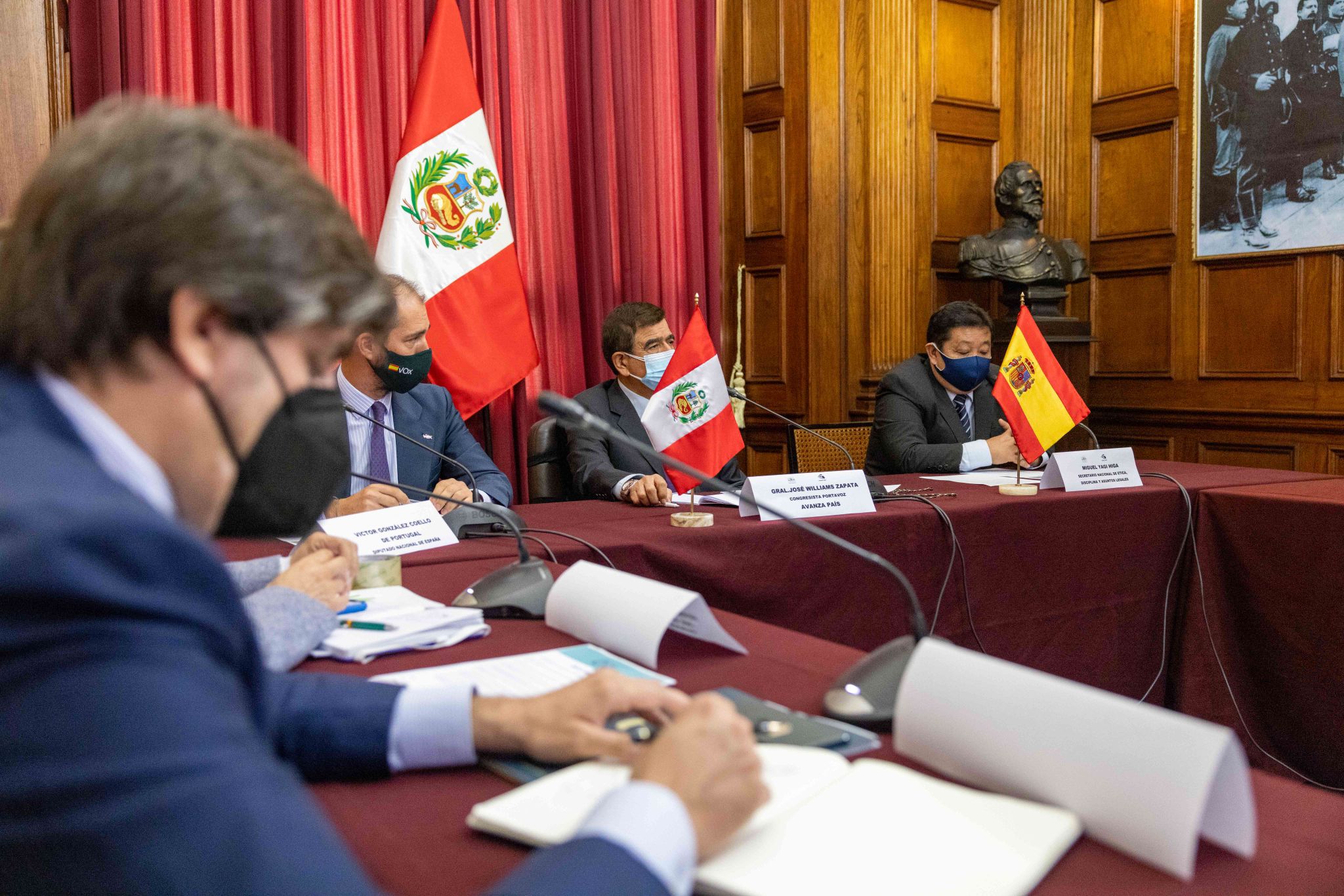 La delegación de la Fundación Disenso, integrada también por el diputado de Vox, Víctor González Coello y el eurodiputado Hermann Tertsch, ha presentado el proyecto a la presidenta del Congreso, María del Carmen Alva, y a Ernesto Bustamante, presidente de la Comisión de Relaciones Exteriores.